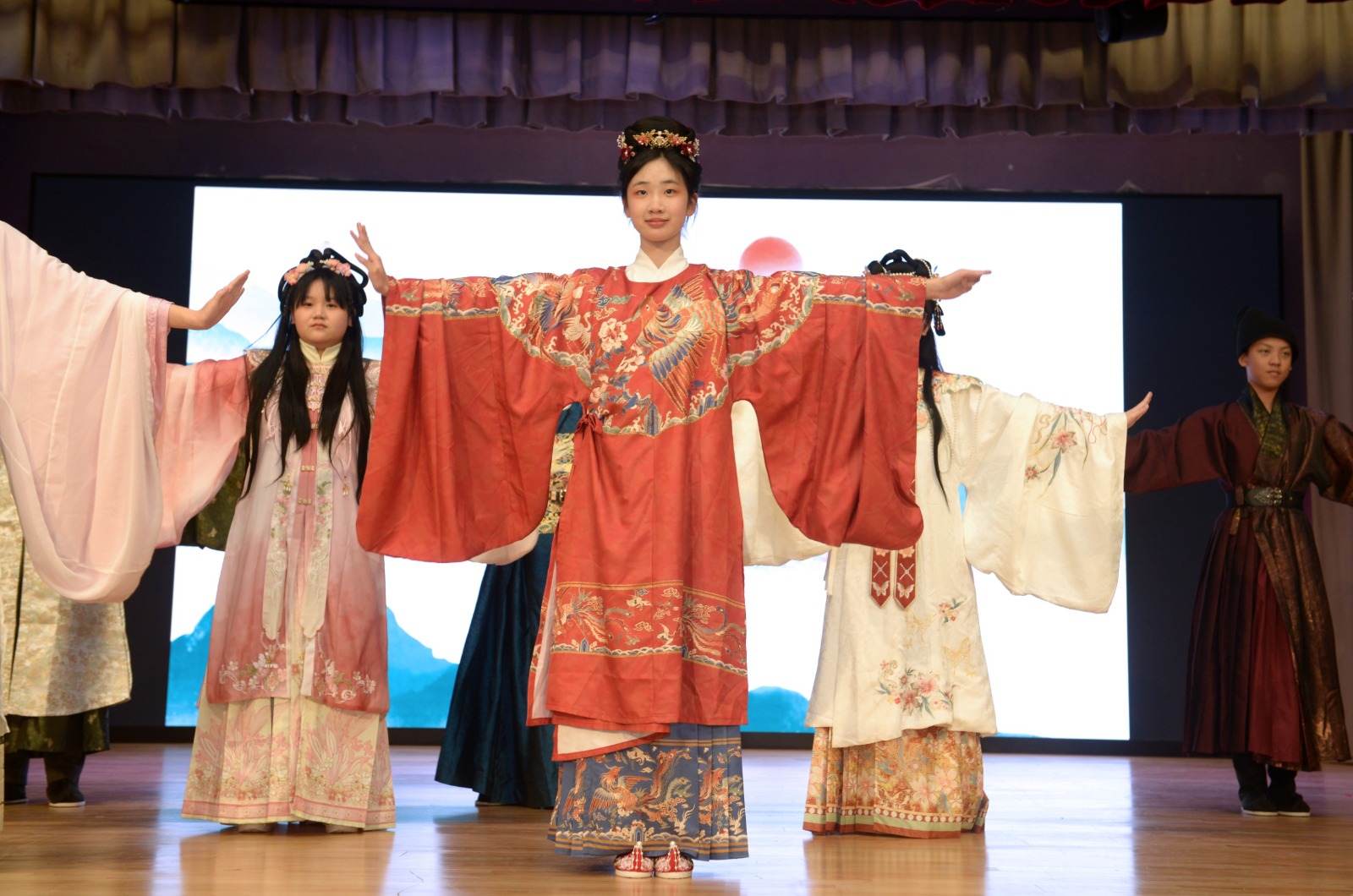 隨後的表演環節中,學生們展現出眾的才華。古箏演奏《雲之南》的旋律帶領觀眾漫遊於雲南的美麗山河;青松侯寶垣小學與教聯會黃楚標學校的學生的武術表演,彰顯出傳統文化的力量;接下來,我們身穿華麗漢服的學生如同歷史的使者,優雅地走上舞臺,展示了明代傳統服飾的無窮魅力,讓人感受到中華文化的深厚底蘊。這段表演不僅展示了美的傳承,更讓大家體會到文化自信的重要性,激勵著每一位年青人勇於做自己的傳奇。🎇
