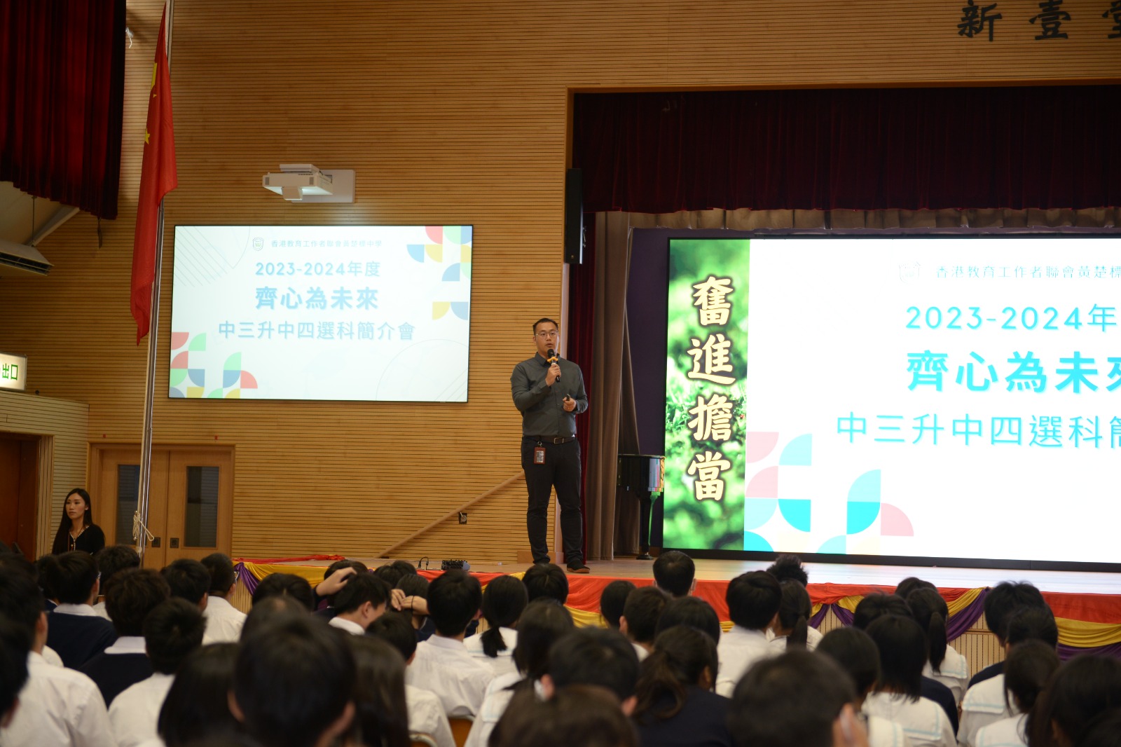 本校為中三學生及家長舉行選科簡介會,提供選科及升學資訊。任教高中選修科老師提供科目咨詢環節,讓學生及家長更深入了解高中課程。