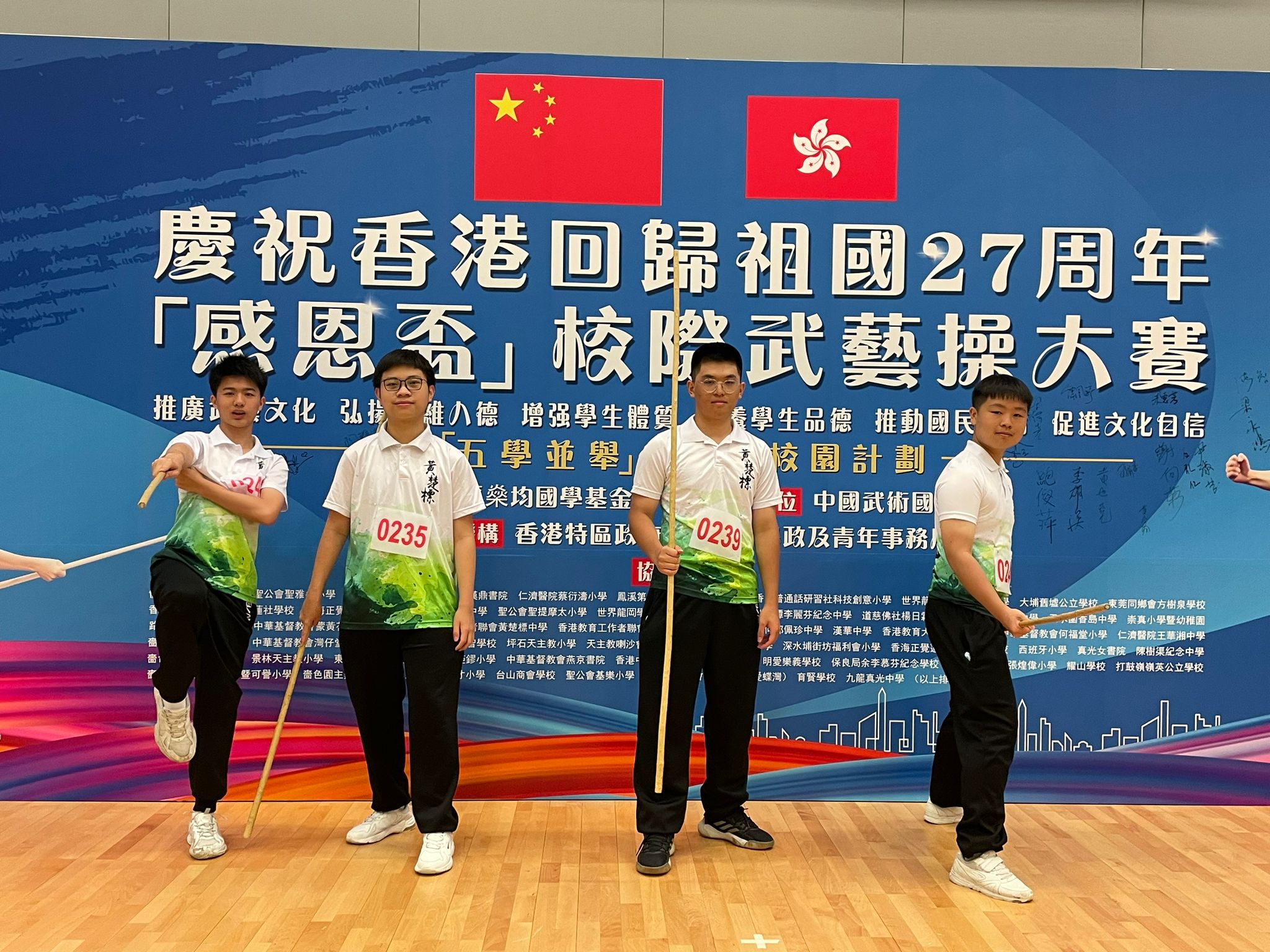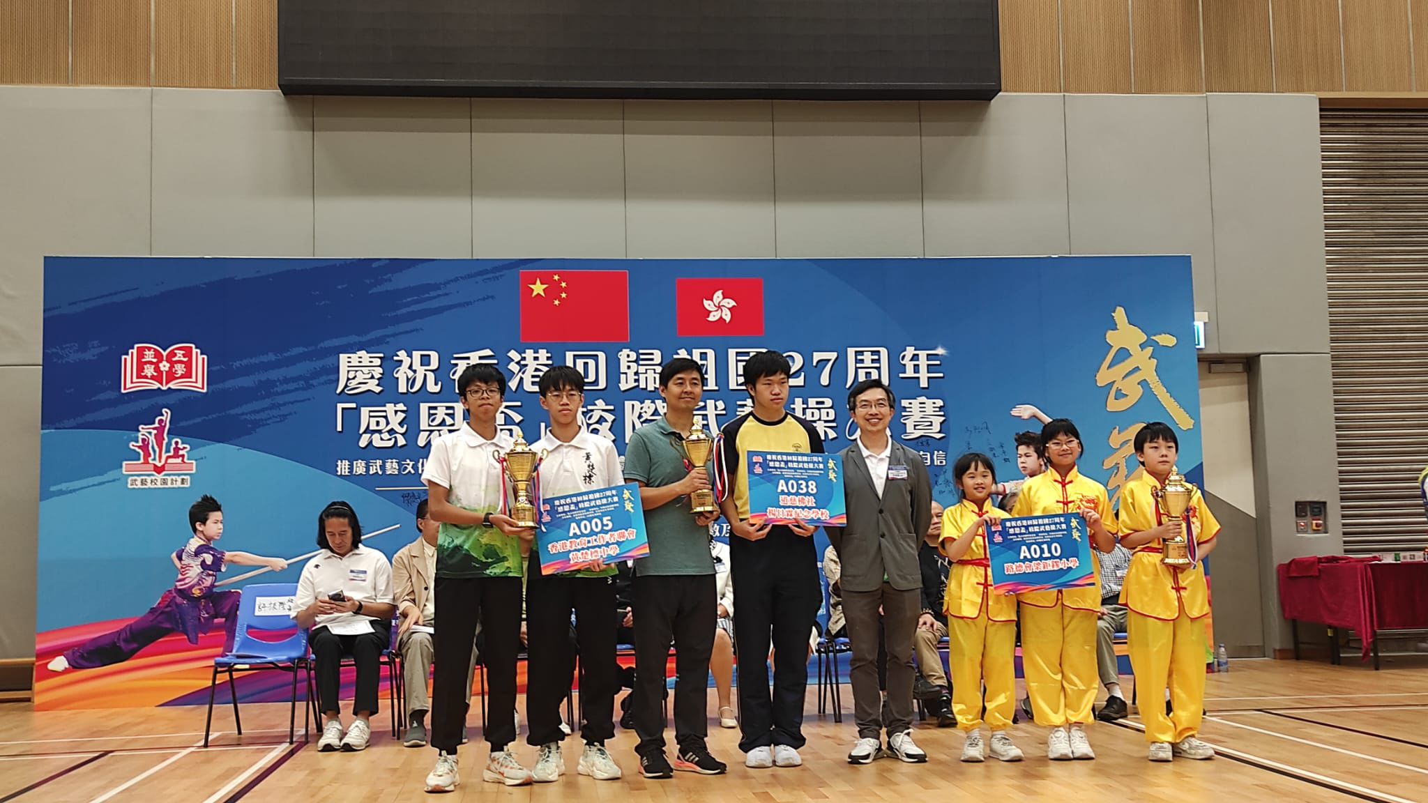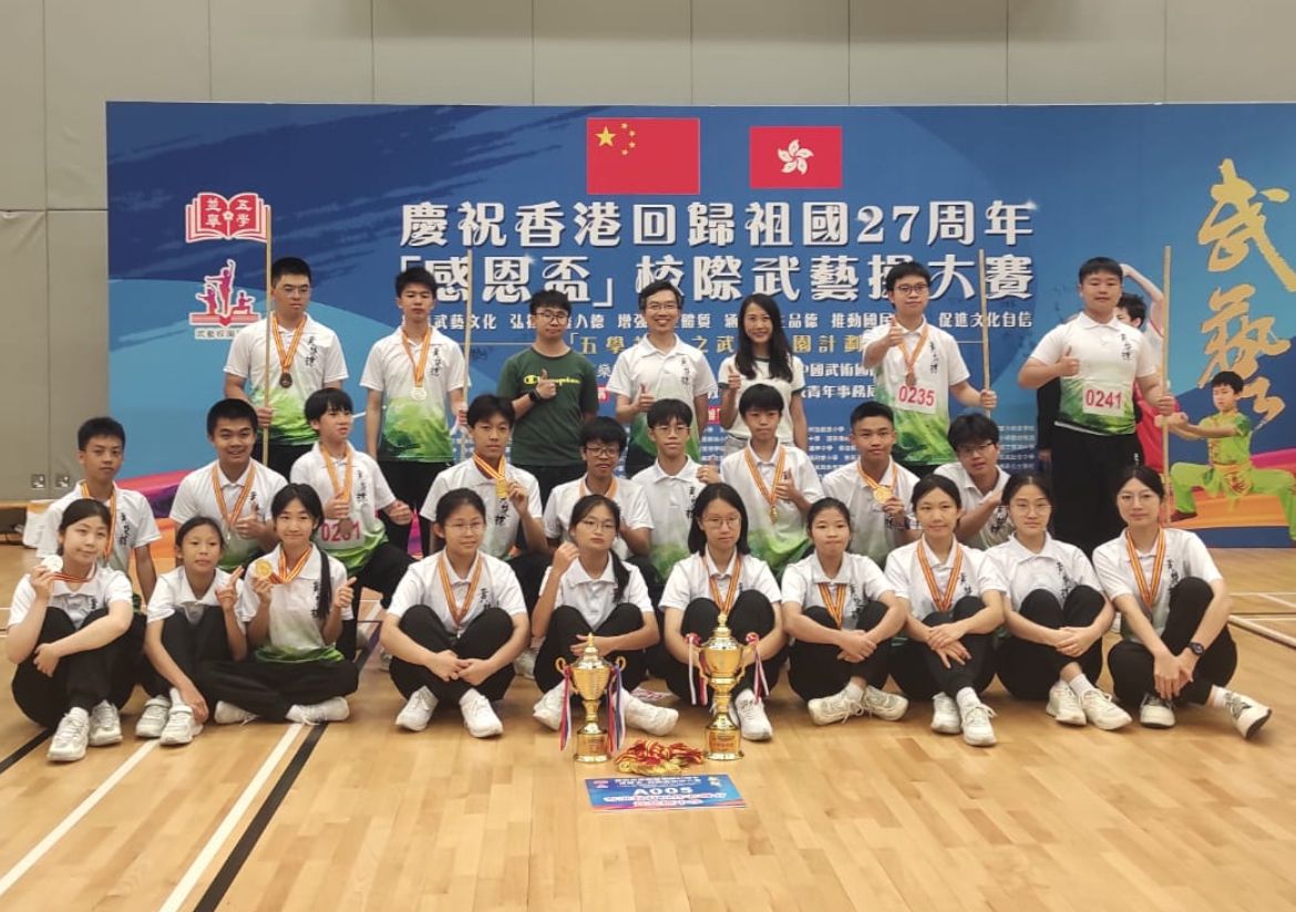 踏入五學並舉之武藝校園計劃第二年,全港中小學參與數目增至約40間。今年的「感恩杯」比賽可謂激烈非凡,每位選手在舞台上盡情展現出他們的武藝英姿。我校的學生無論是在集體武藝操還是個人比賽項目中,默默耕耘追求個人突破,最終獲得了不俗的成績。