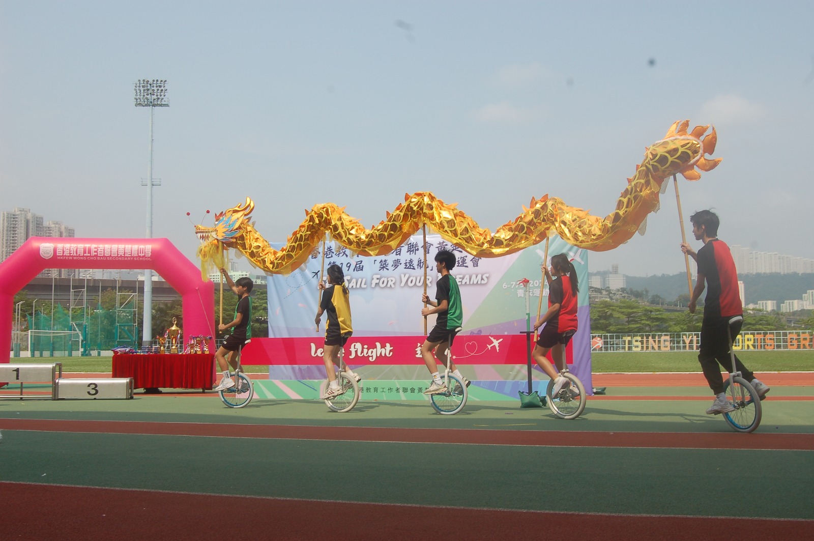這次運動會以「築夢遠航」為主題,象徵著學生和老師在競技場上付出辛勤努力,實現了各自不同的夢想。而今年首次舉行的燃點夢想火炬儀式,寓意著我校的同學們通過努力學習和自我提升,在德、智、體、群、美各方面都獲得了豐碩的成長。他們向著無限廣闊的天空高飛,不僅在這次運動會中熠熠生輝,更將這種全力以赴的體育精神傳承給未來的每一屆學生和教師。